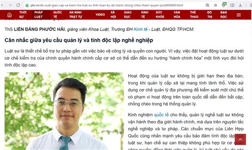 Góp ý pháp luật của Luật gia Liên Đăng Phước Hải trên Tạp chí Pháp lý